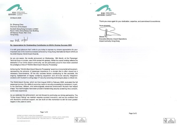 同方威視助力香港機場榮膺“全球最佳機場安檢“獎,喜獲官方感謝信