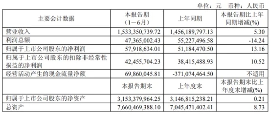 8月23日,聯贏激光發布2025年半年報,報告期內,公司營收為15.33億元,同比上升5.3%;歸母凈利潤為5791.86萬元,同比上升13.16%;扣非凈利潤為4245.57萬元,同比上升10.52%。