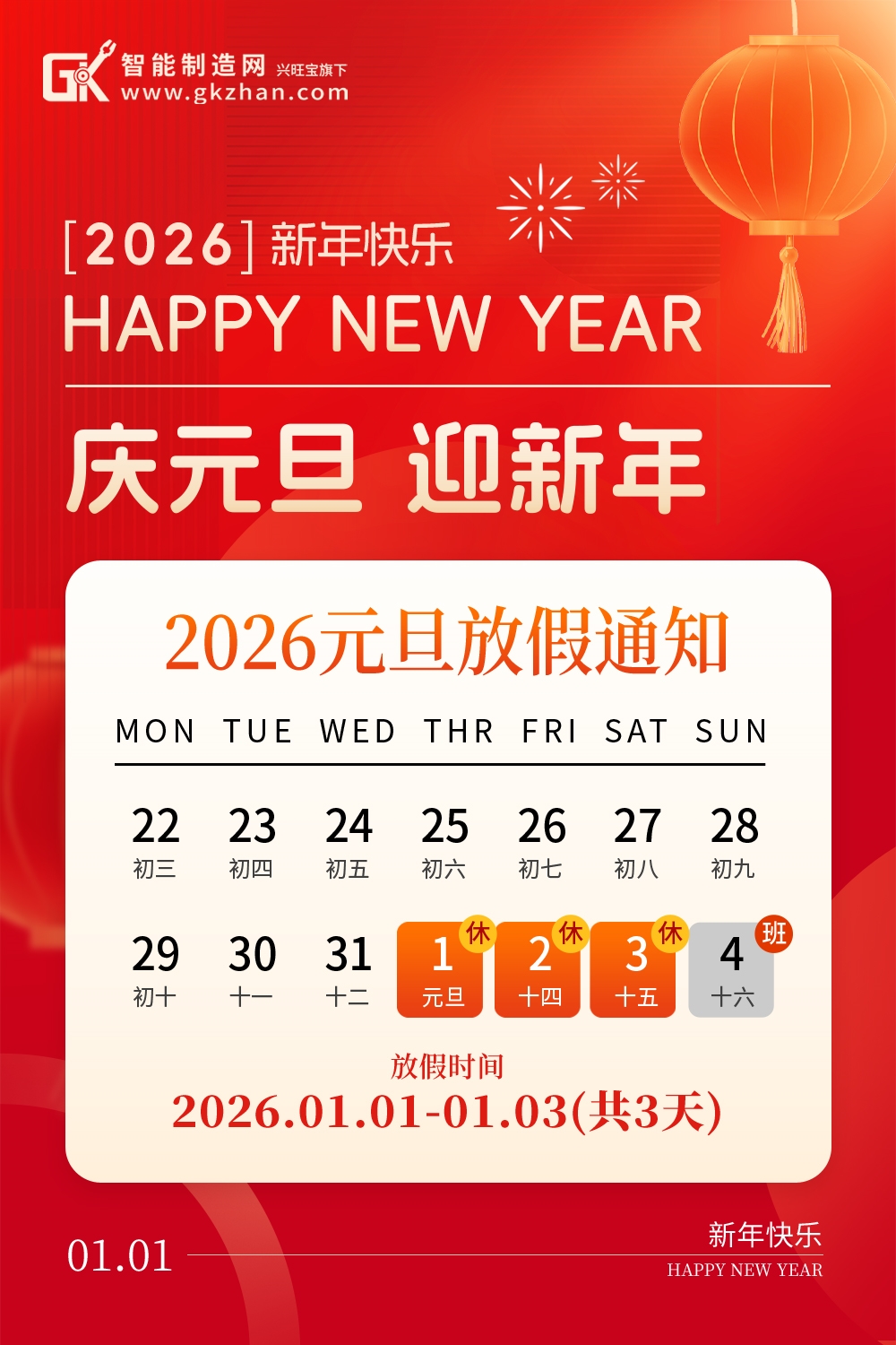 2025-12-31 10:54:20來源:智能制造網 關鍵詞:智能制造網元旦放假通知閱讀量:21507