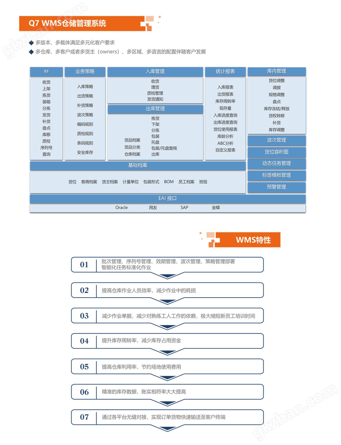 WMS智能倉儲解決方案 Q7WMS倉儲管理系統為優化倉儲執行并進行有效管理,七通自主研發軟件倉儲管理系統(WarehouseManagementSystem),對倉庫作業過程的指導和規范,增加倉庫的效率、管理透明度、真實度以減低成本,幫助企業供應鏈高效運作